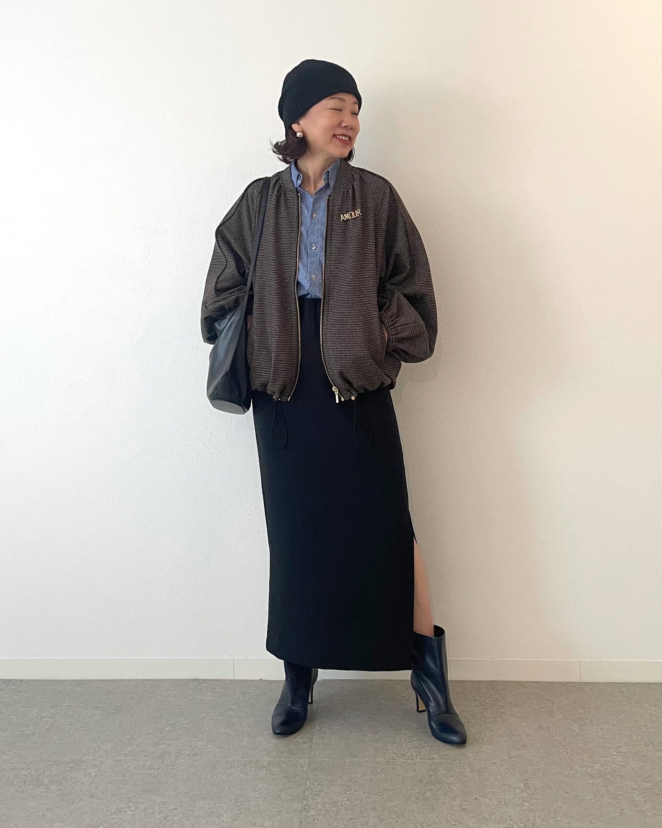 秋でも暖かい日が多く、重たいコートは着るタイミングを逃しがち。そんな今の気候にぴったりな“軽くて長く着られる” アウターです。…今回のブルゾンは、羽織るだけでコーディネートが完成する頼れる一枚。以前つくった人気ブルゾンと同じ形で、再販のリクエストが多かったデザインです。どんなボトムスにも合わせやすく、ほどよくモードで女性らしいシルエットが魅力。私自身も毎シーズン愛用していて、「これさえあれば安心」と思える形です…